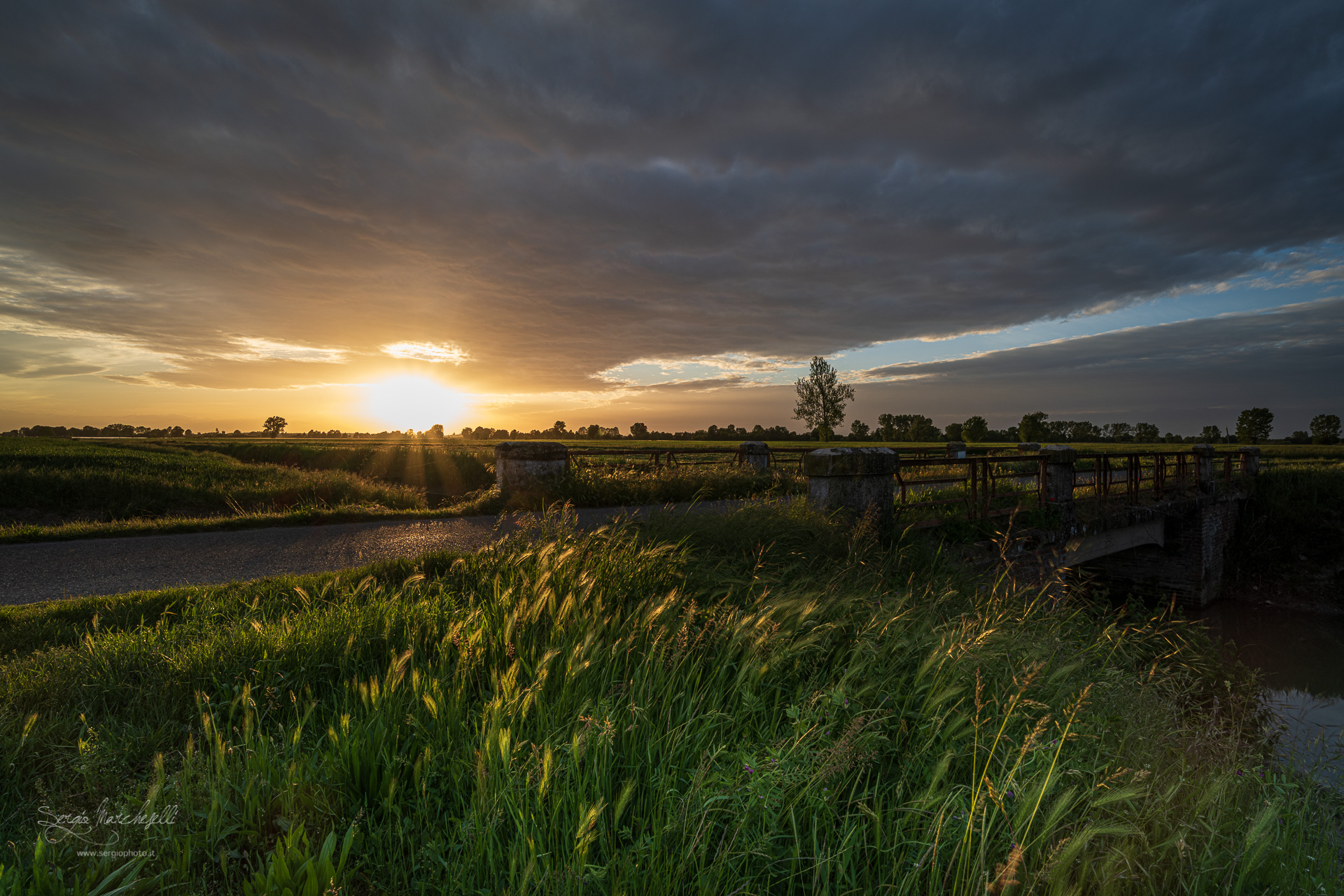 – Le tue foto, Sergio, sono foto sicuramente pensate, non fatte con un telefono e via. In esse percepisco un pensiero, una passione e una dedizione di un professionista, soprattutto per intrappolare dentro alla macchina fotografica il momento perfetto, il momento in cui tutto sembra “sospeso” per un attimo. I colori, le luci, le ombre e gli elementi che fotografi non sono posizionati o messi per caso, dietro c’è uno studio nell’elaborazione dei giusti pesi visivi per guidare l’occhio dello spettatore esattamente dove tu desideri indirizzarlo. Nelle tue foto il soggetto è l’ambiente, e che soggetto! La Pianura Padana, per quanto semplice e forse noiosa, sa regalare a chi ha un occhio più attento momenti pazzeschi, quasi fatati.