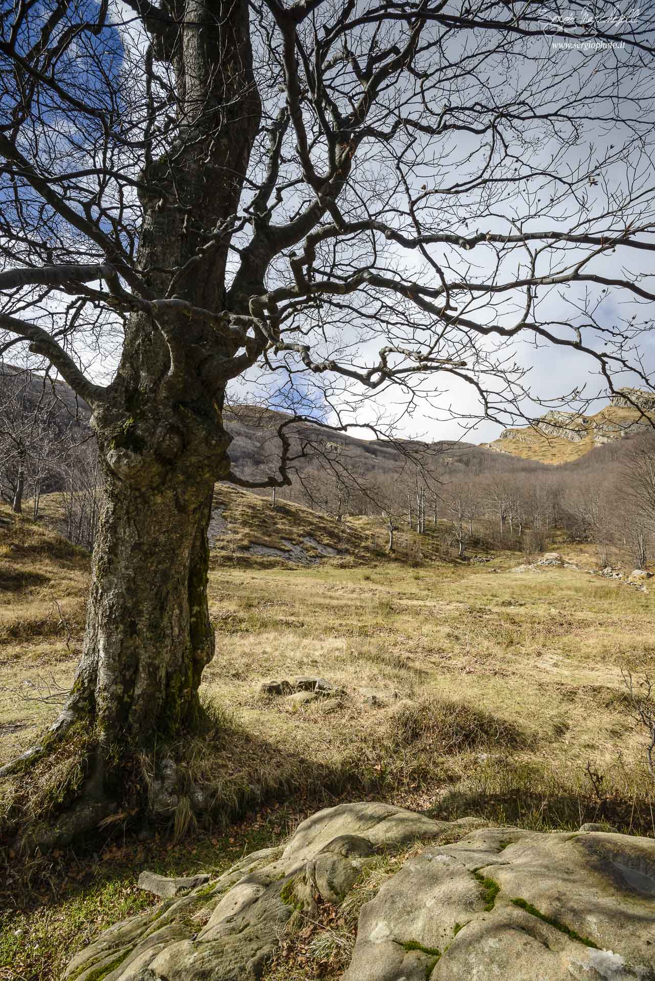 Ma la sensazione di magia rimane. Sarà perché l’assenza del chiassoso turismo della bella stagione restituisce al luogo il silenzio millenario, rotto solo dallo scrosciare dei ruscelli che scendono a valle, dal canto dei pochi uccellini temerari, dal sussurrare sommesso del vento che mi informa che dal crinale arrivano nuvole cariche d’acqua o della prima neve. Sarà perché qui ho visto talmente tanta bellezza che l’effetto si prolunga nel tempo.